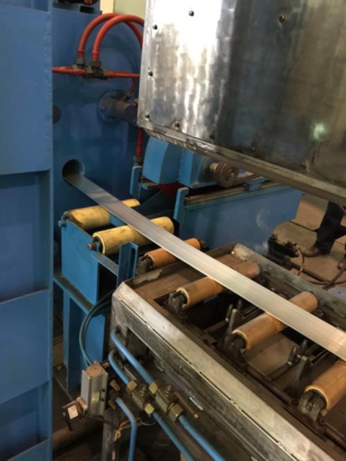 铝基陶瓷增强材料是使用在核工业上的新型材料,其中的陶瓷材料硬度极高,仅次于金刚石。铝基陶瓷增强材料对温度很敏感,挤压工艺条件要求苛刻,是一种极难变形的材料。重点实验室挤压团队通过建立严格的挤压温度控制规程、提升模具加热温度和挤压速度低速闭环控制等措施,逐步掌握此种材料的挤压特性,为我院成套的36 MN铝基陶瓷增强材料挤压生产线的调试奠定了基础。