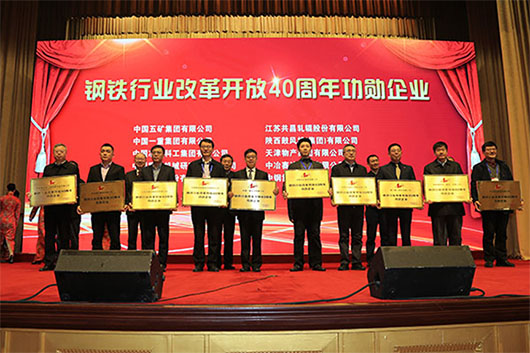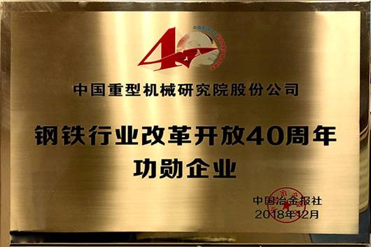 2018年12月22日,由中国钢铁工业协会指导,鞍钢集团和中国冶金报社共同举办的中国钢铁行业庆祝改革开放40周年高峰论坛在鞍山举行,论坛同期举行了“钢铁行业改革开放40周年功勋企业”颁奖仪式,中国重型院荣获此项殊荣。王社昌总经理参加论坛并代表领奖。